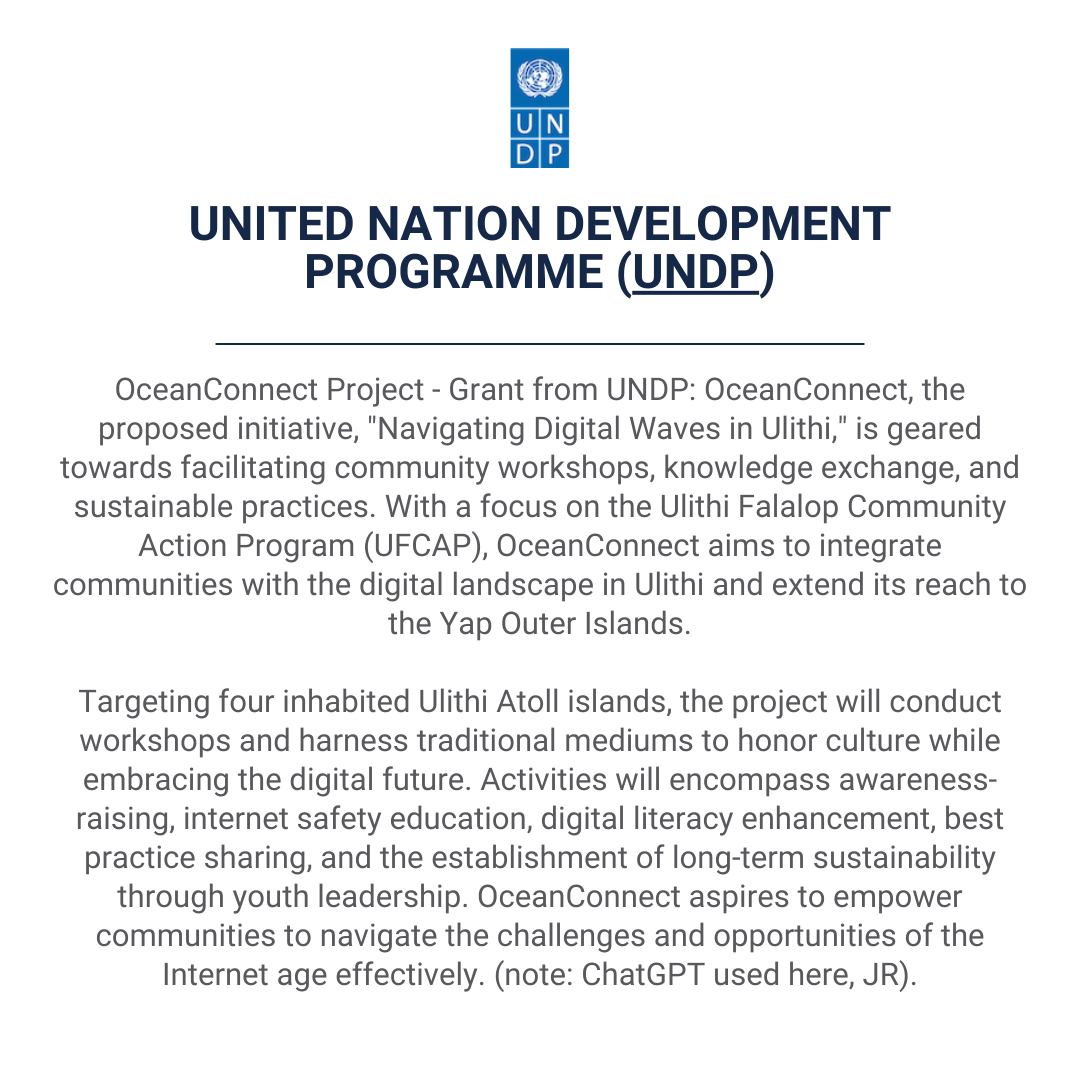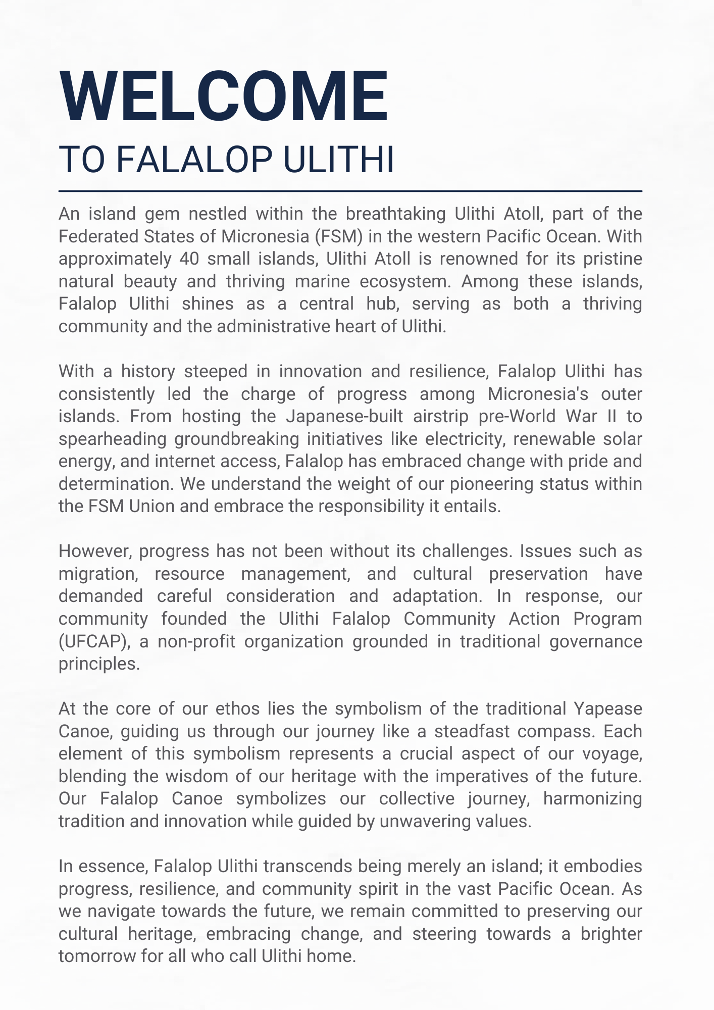 UFCAP is devoted to the preservation of the livelihoods of the people of Falalop Ulithi, as well as the outer islands of Yap State.